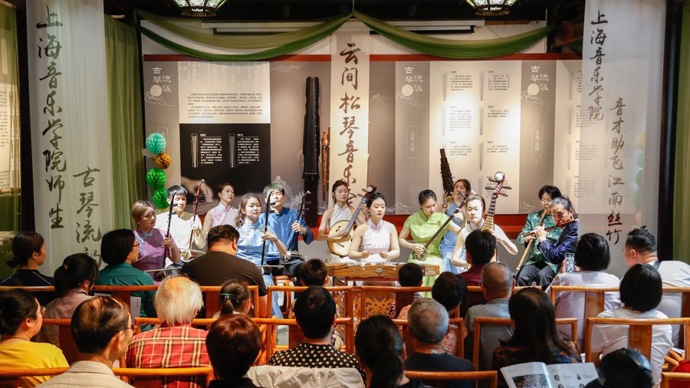 比如,松江区中山小学和“素园琴馆”合力打造“古琴雅韵”社团,课程设置上注重分年级、分层次设计,聘请上海音乐学院古琴教师每周授课,为学生提供权威、专业辅导。阶梯式推进,确保教学的针对性和实效性。学校每周近百名学生以研学的方式,走进非遗松江琴派(江操)所在地“素园琴馆”,开展以古琴为核心的教学和文化传扬。如今,参与古琴培训的学生数达到26000余人次,社团培养了近1000名会弹古琴的小学生。